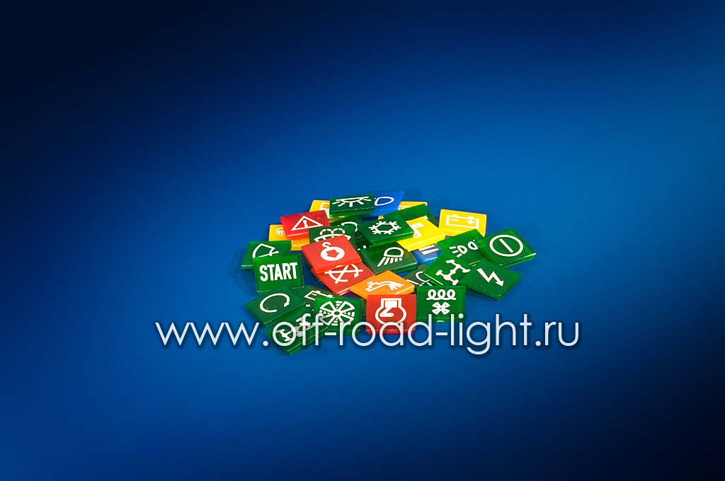 Пластиковый щиток зеленого, красного, синего или оранжевого цвета с нанесенной пиктограммой. Щиток монтируется в переключатели Hella серии “007 832".